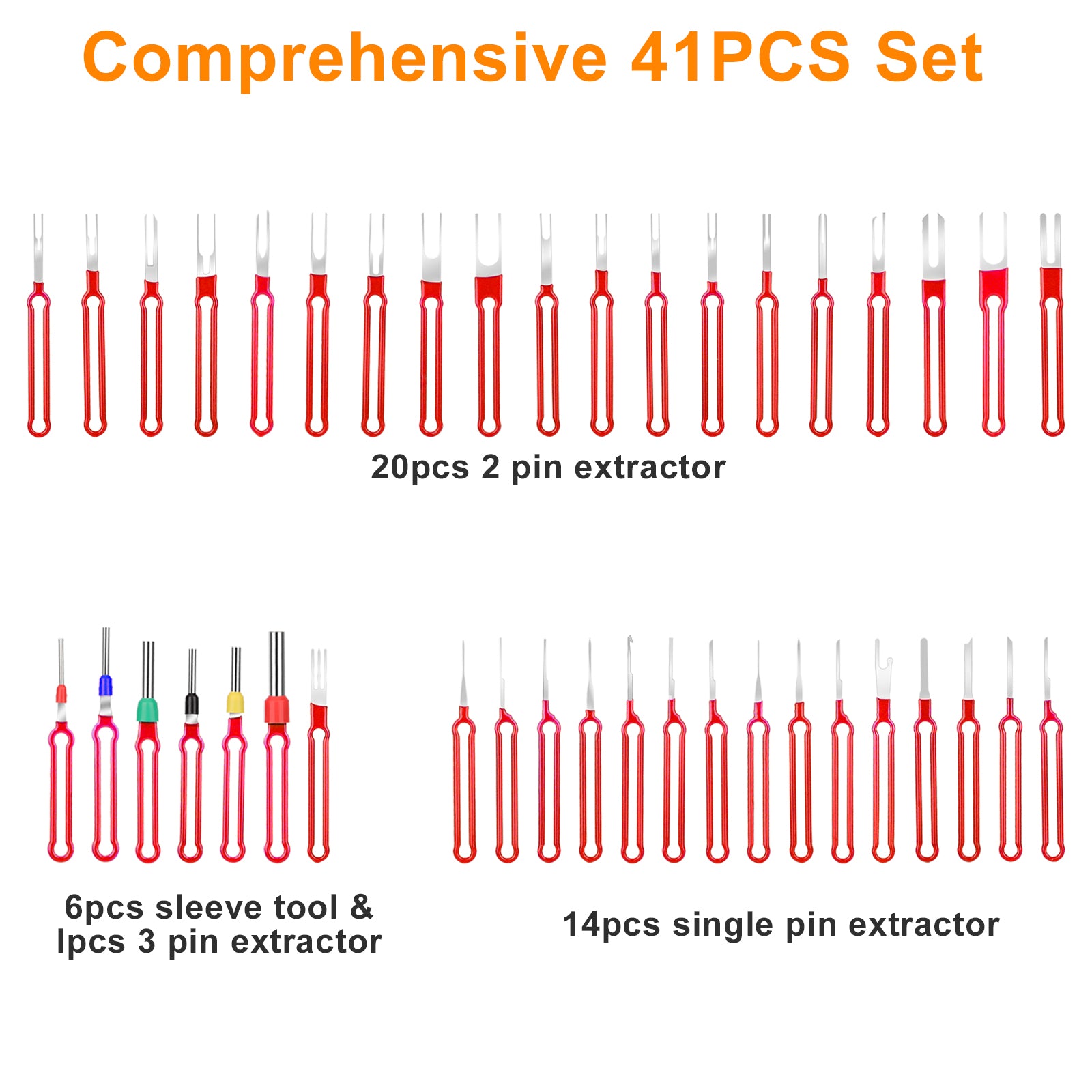 Comprehensive 41-Piece Set: Equipped with a variety of pin pullers and sleeve tools to accommodate different terminal types and sizes.