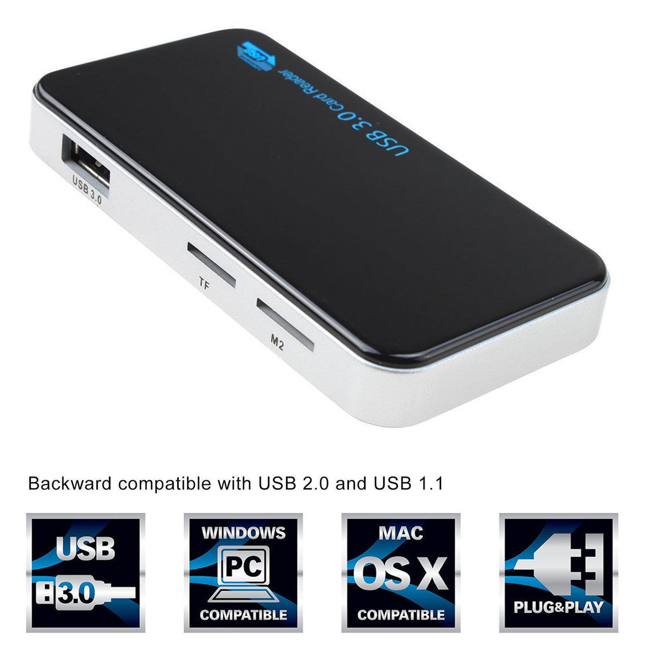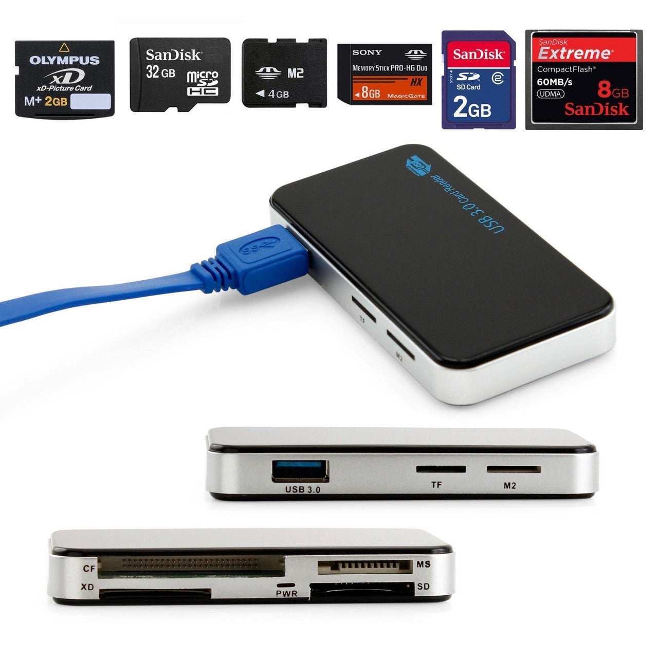 A1: This card reader supports a variety of memory cards, including Micro SD, SD, XD, CF, M2, MS, and TF cards, making it versatile for different storage needs.